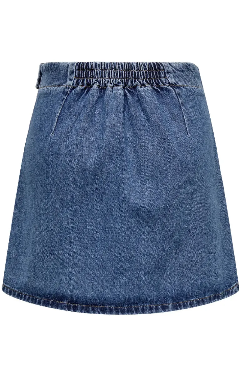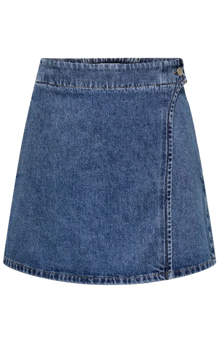 Wrap nederdel fra ONLY i en mørkeblå denim kvalitet.