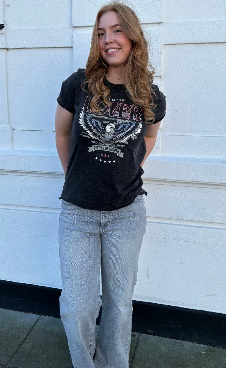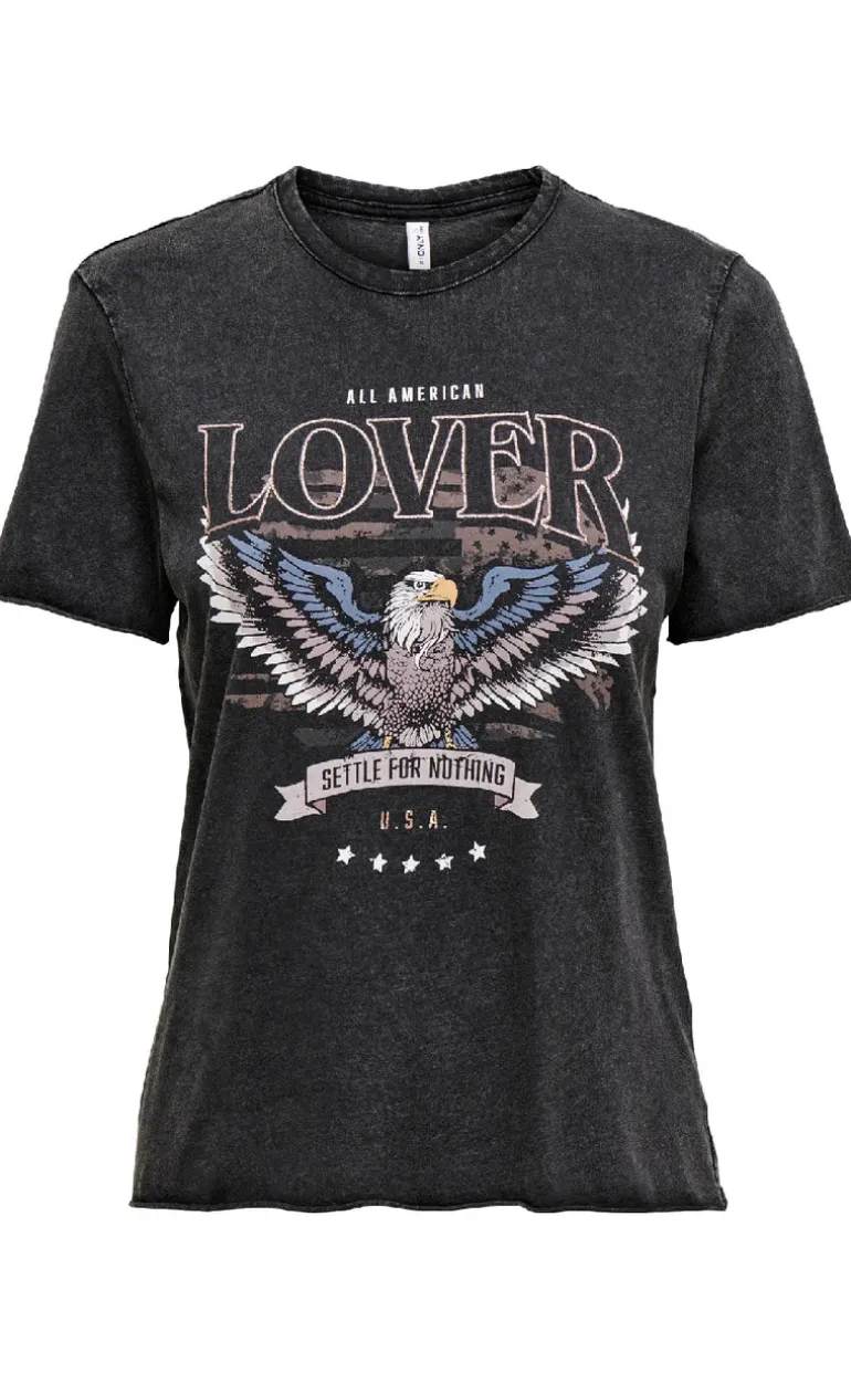 Cool og rå t-shirt fra ONLY med et sejt print fortil.