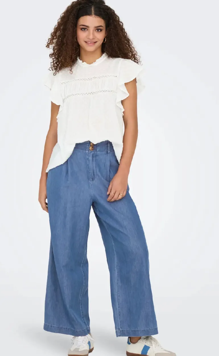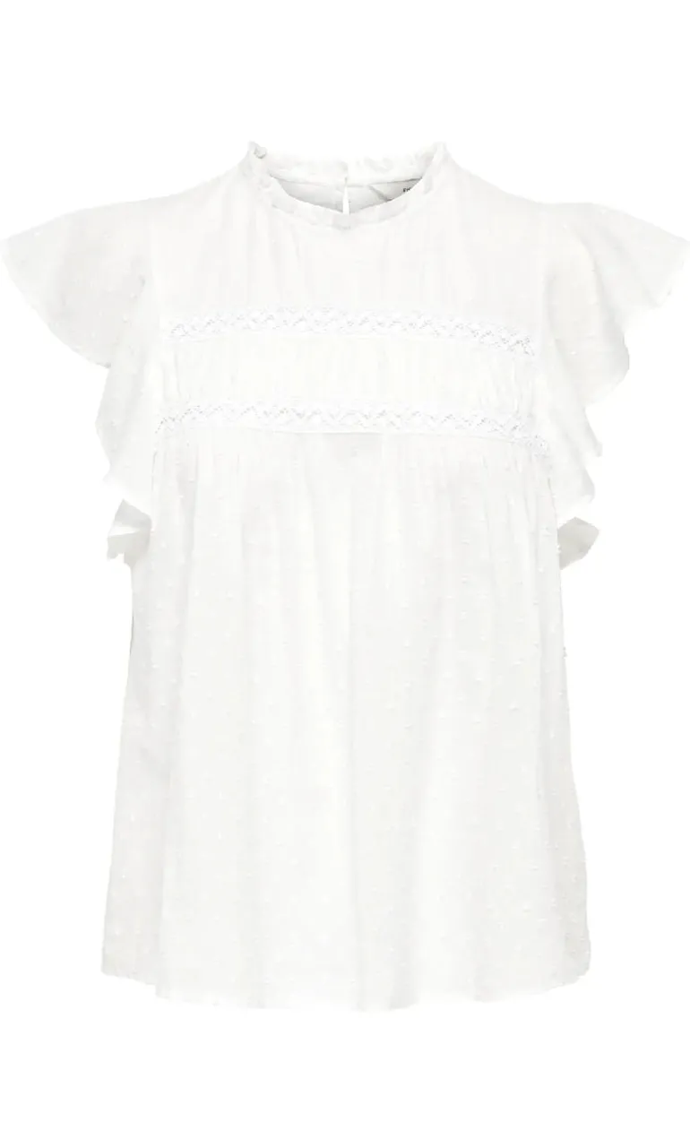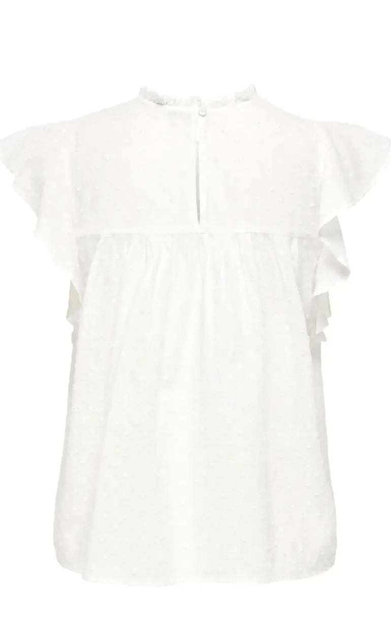 Sød og feminin top fra ONLY i hvid, med flæsedetaljer.