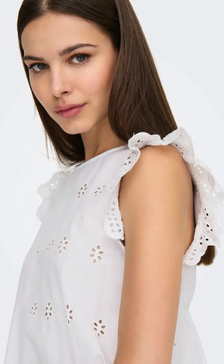 Den fineste blonde top i hvid med smukke detaljer og udskæring på ryggen