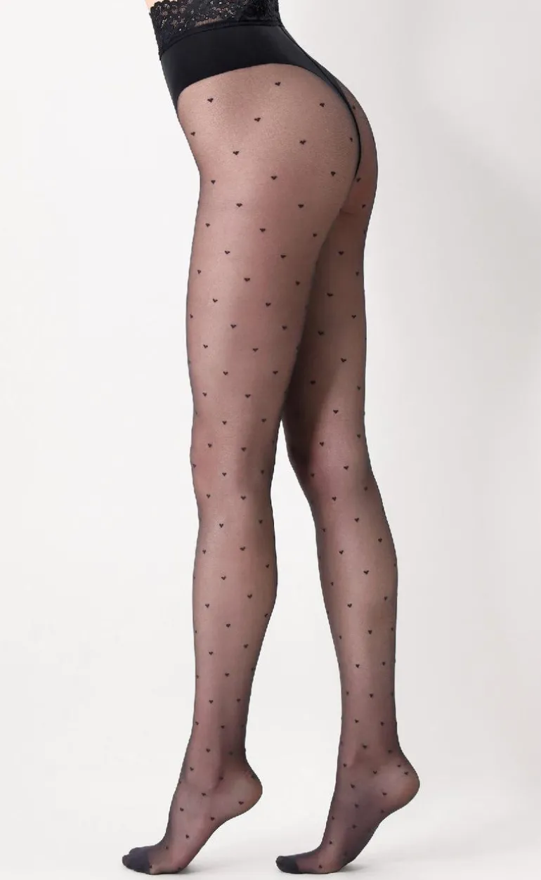 Lækre og behagelige strømpebukser fra det velkendte mærke, Oroblu. De kommer i en sort nuance, med små sorte hjerter som danner et flot mønster.