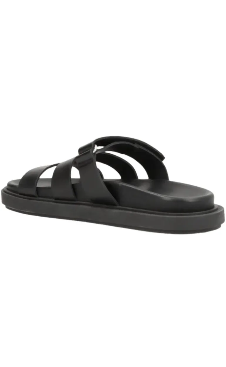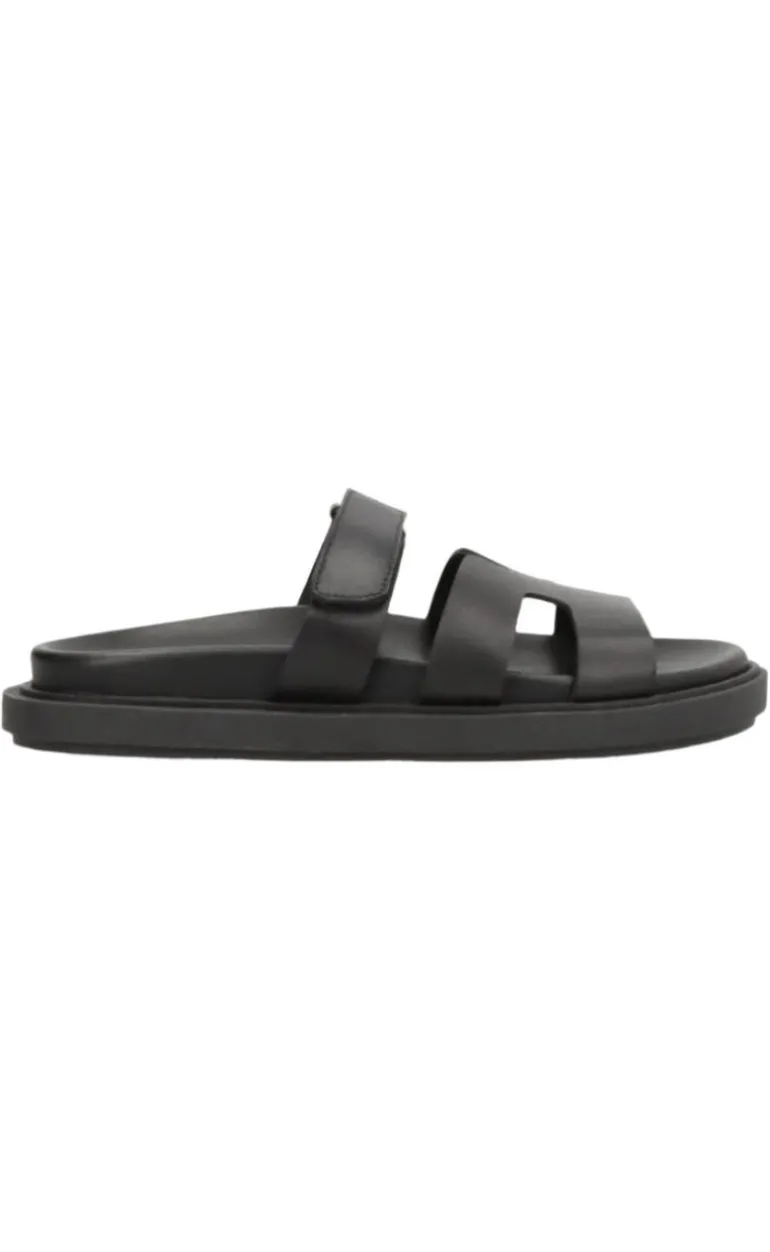 Disse sandaler har en sort behaglig bund, og sort velcro spænde hen over foden.