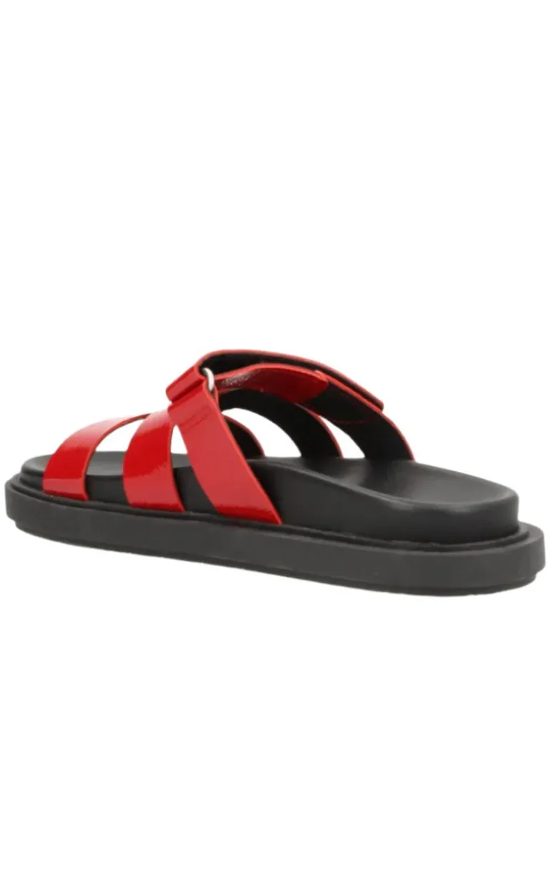 Disse sandaler har en sort behaglig bund, og røde spænde hen over foden.