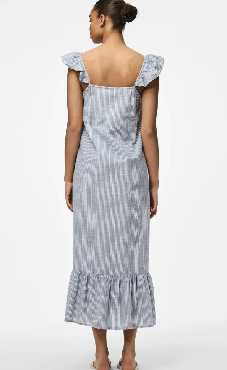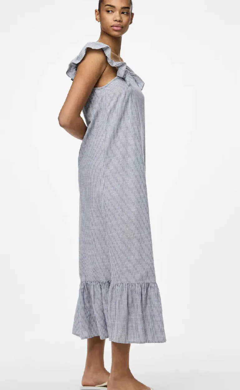 Kjolen har en maxi længde og en firkantet halsudskæring.