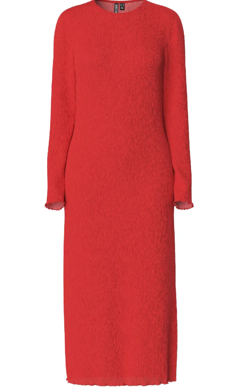 Maxi plisse kjole fra Pieces i en flot rød farve.
