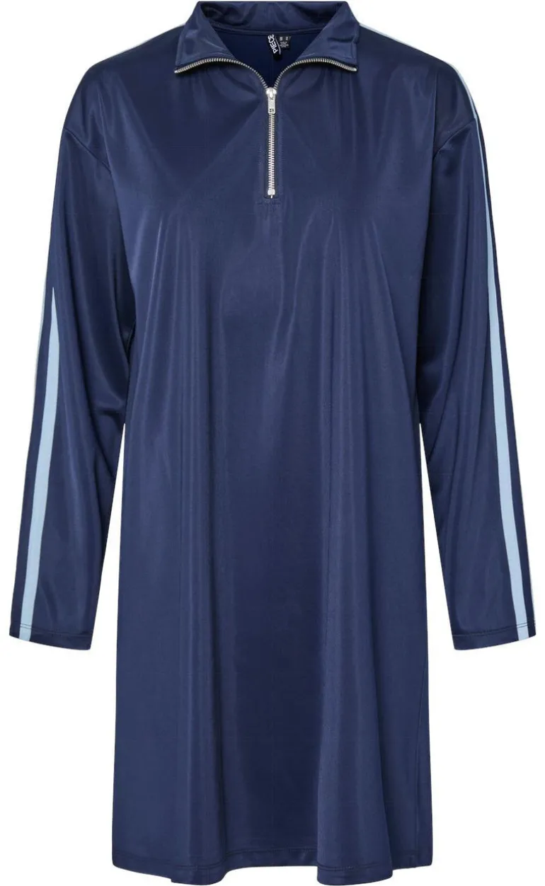 Denne fine kjole fra Pieces kommer i en blå farve, med 3/4 lynlås samt lange ærmer.