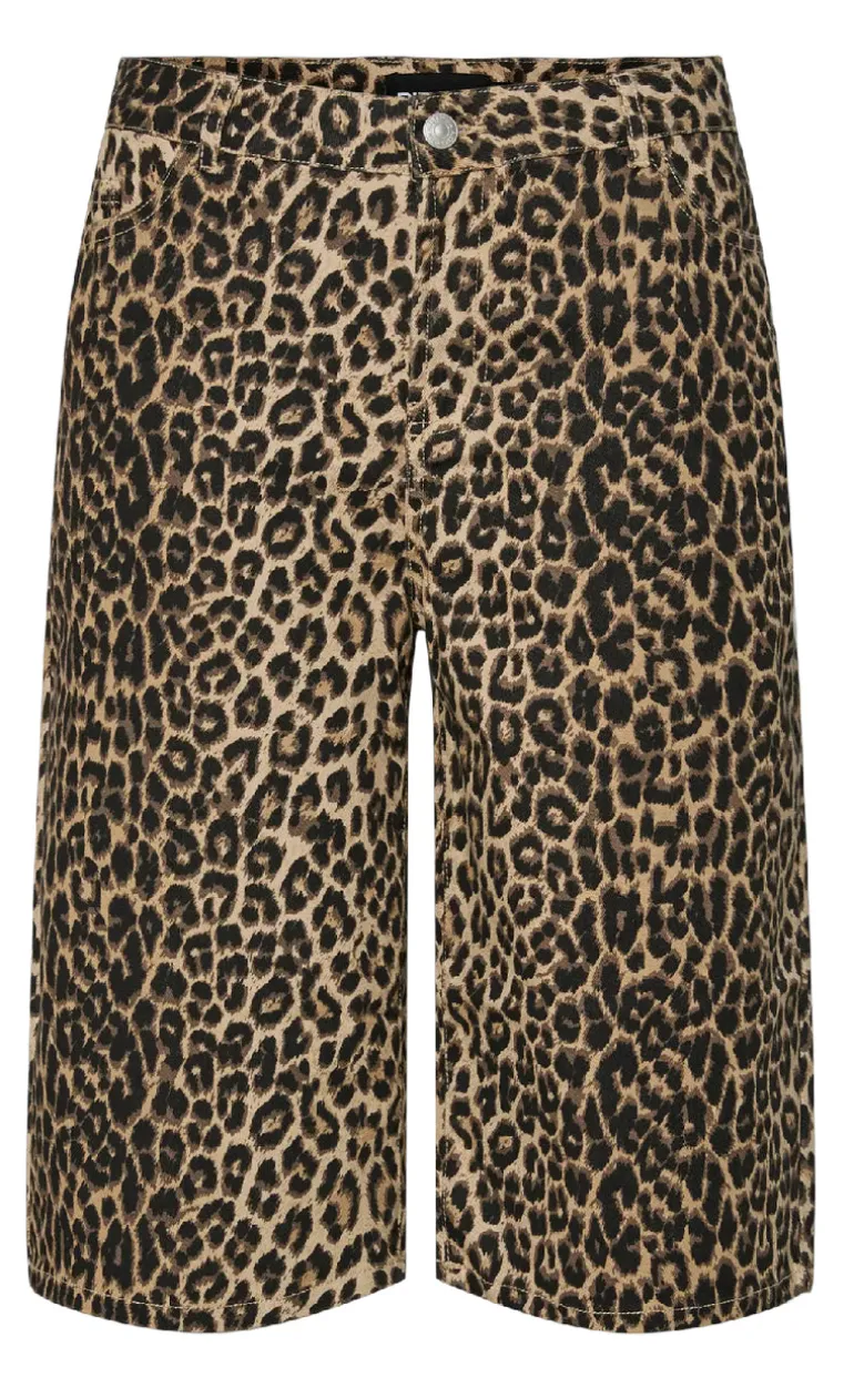 Knælange shorts fra Pieces i en denim kvalitet, og i et leopard print.