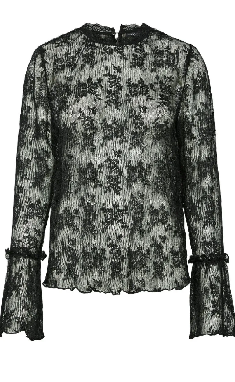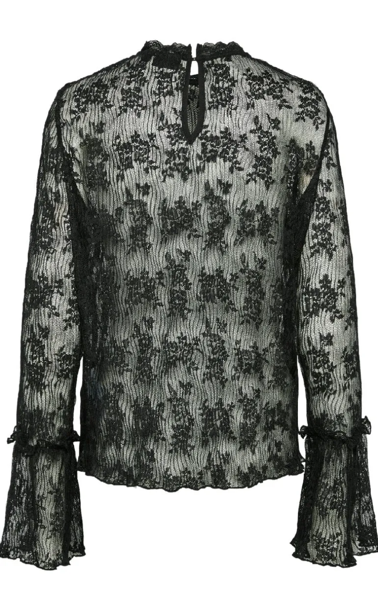 Feminin top fra Pieces i et let transparent mønster, i en sort nuance.