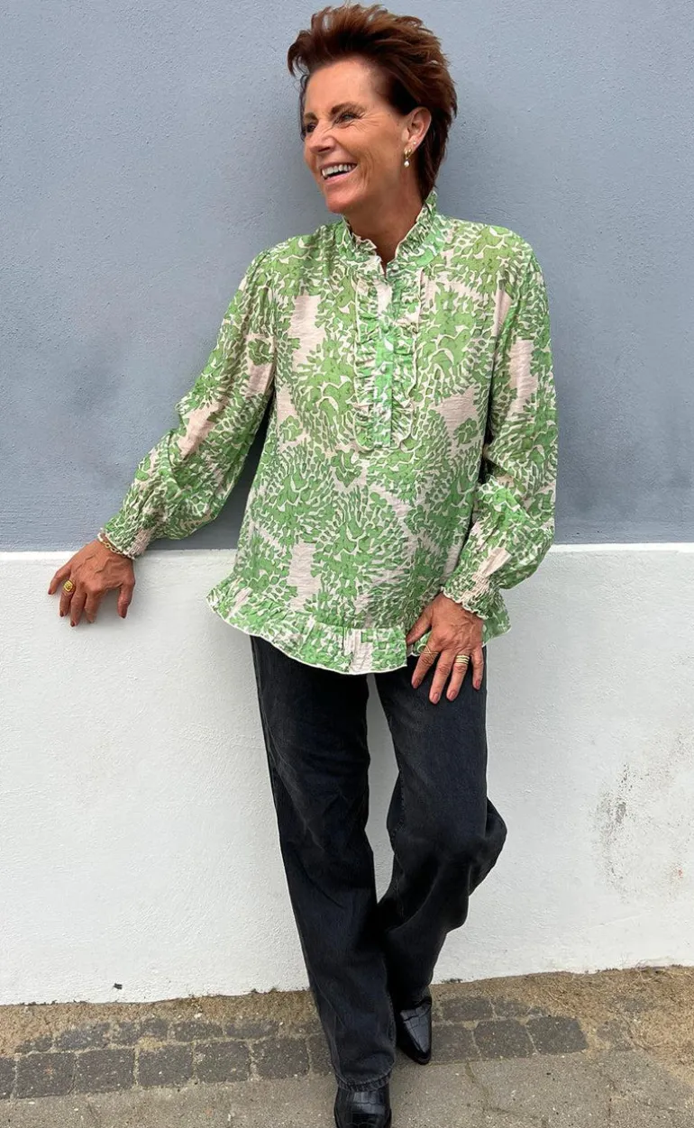 Fin bluse fra INA Copenhagen med et grønt print.
