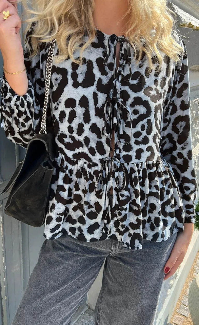 Den flotteste bluse fra INA Copenhagen i med leopard print i grå nuancer.