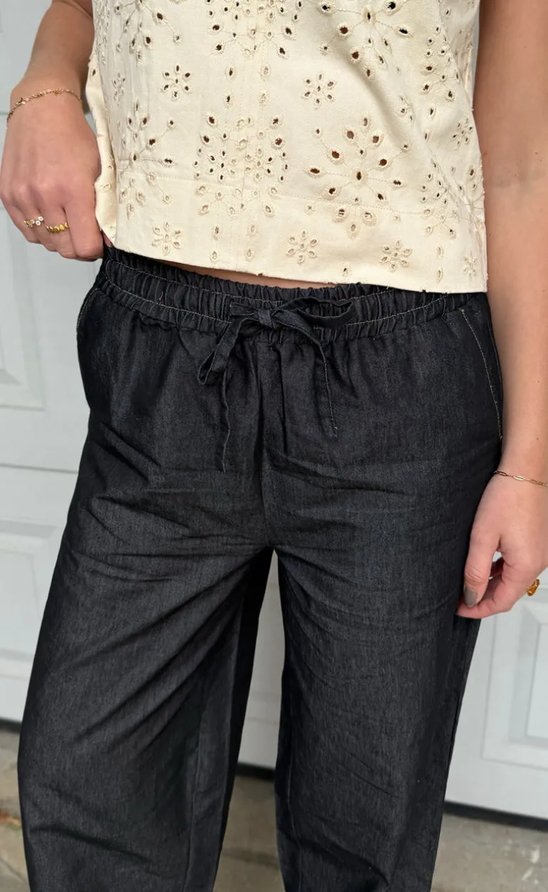 Fine denim look bukser fra INA Copenhagen i sort.
