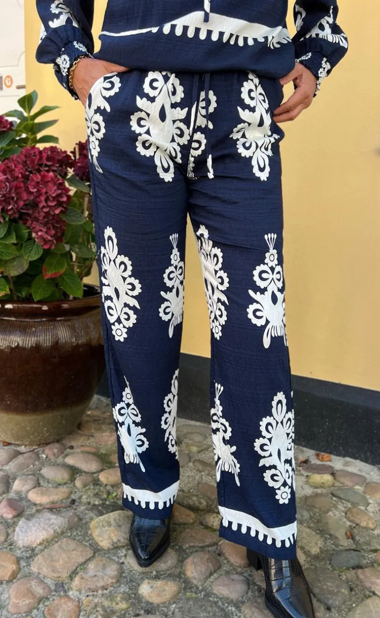 Fine bukser fra INA Copenhagen i navy blå med paisley mønster.