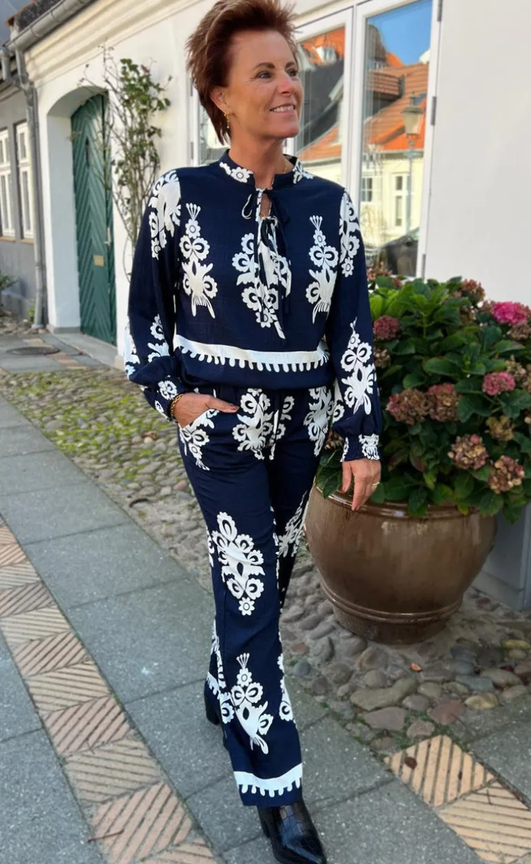 Bukserne er perfekte at style med matchende INA Copenhagen Bluse – Tora – Navy Blue Paisley, men kan også styles med f.eks. en ensfarvet bluse.