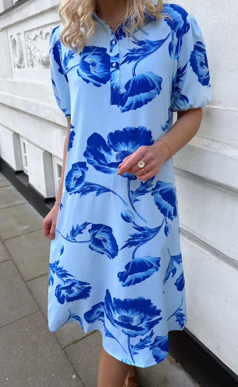 Fin kjole fra Say INA med blomster i blå.