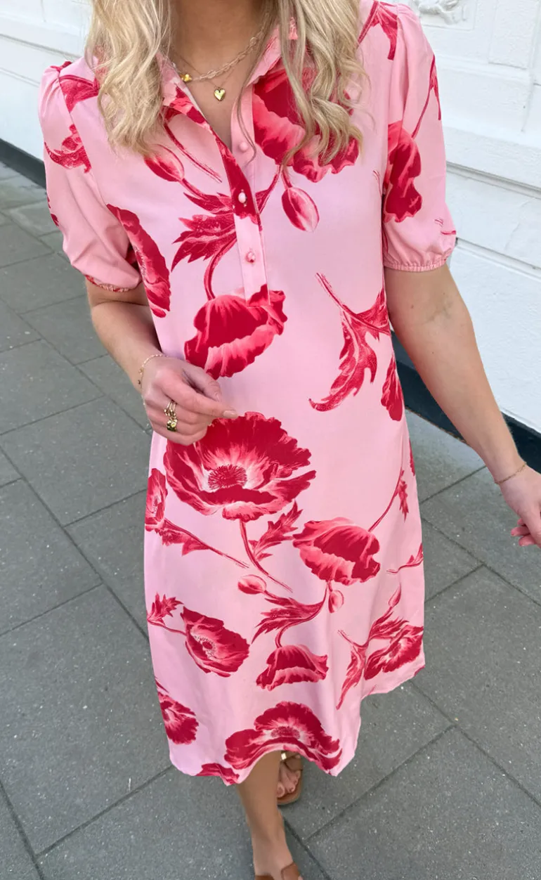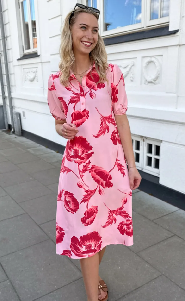 Smuk kjole fra Say INA i rosa med pinke blomster.