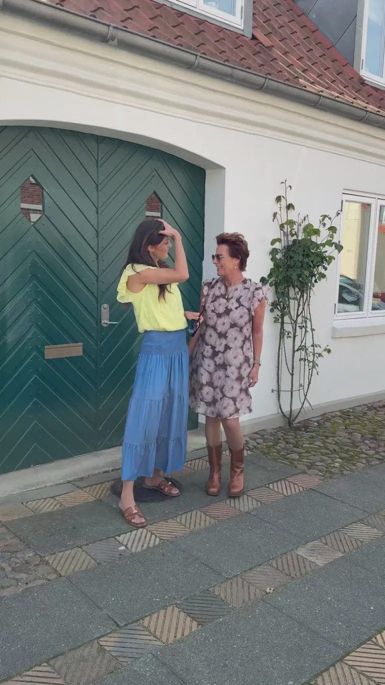 Modellen er 165 cm (mørkhåret) & 177 cm (lyshåret) og har en størrelse S på