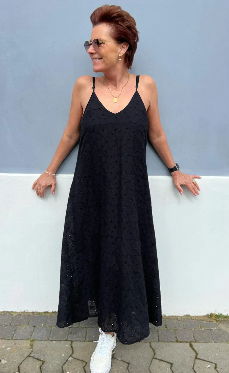 Flot kjole fra INA Copenhagen i sort broderie anglaise.
