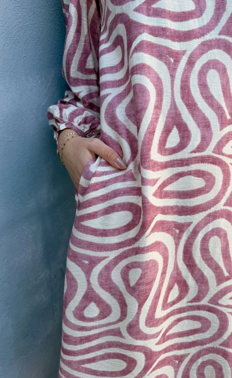 Den smukkeste kjole fra INA Copenhagen med print i en rosa nuance.