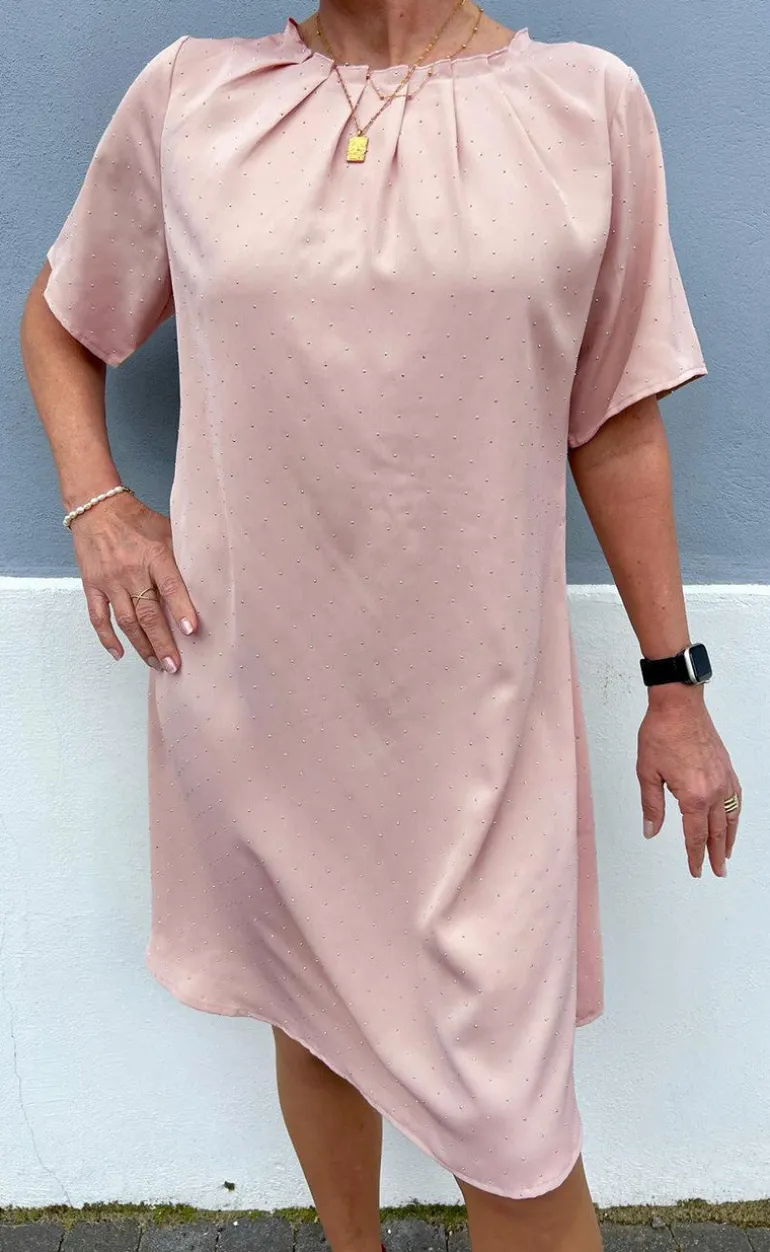 Smuk og eksklusiv kjole fra INA Copenhagen i lyserød med similisten.