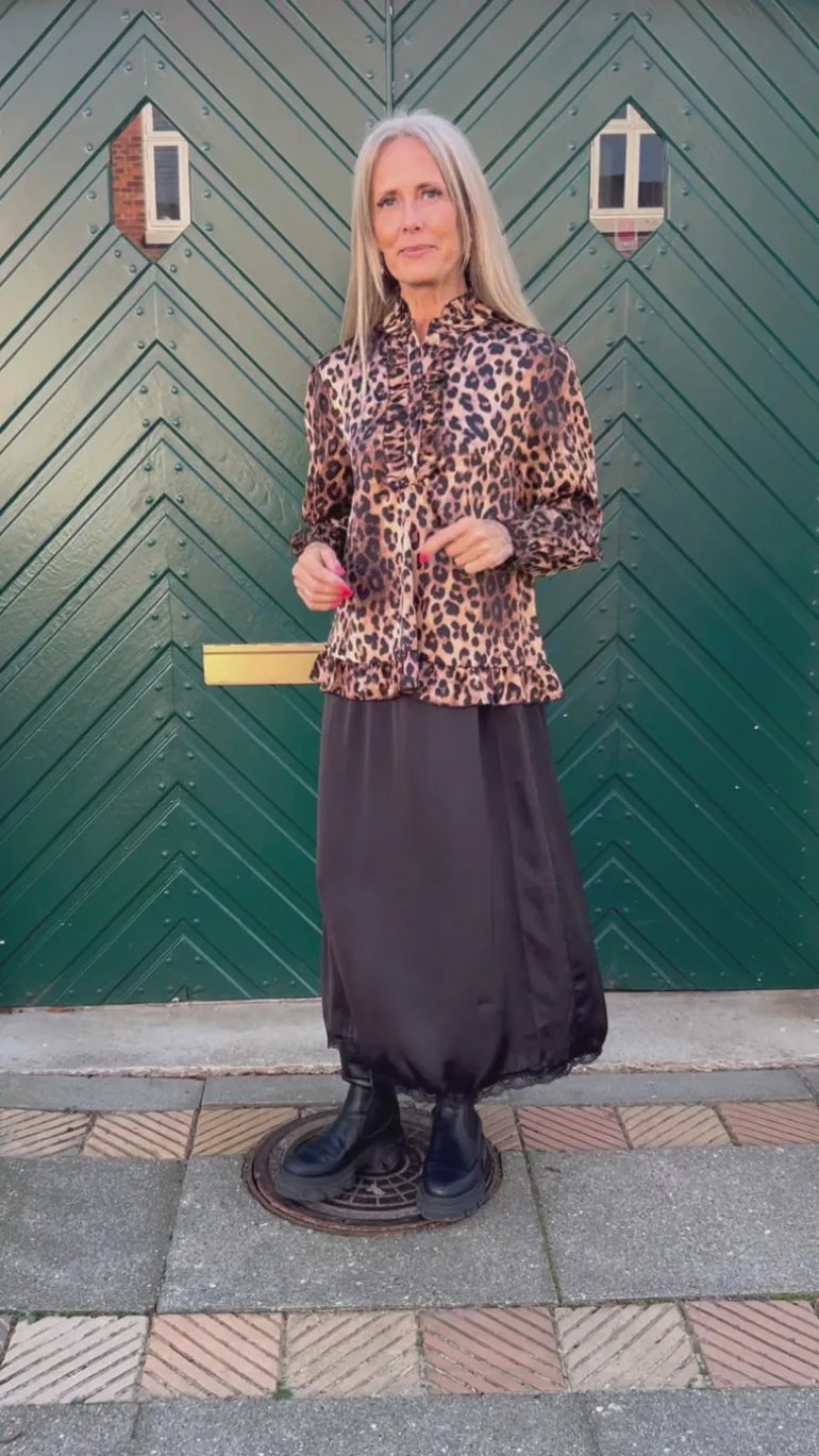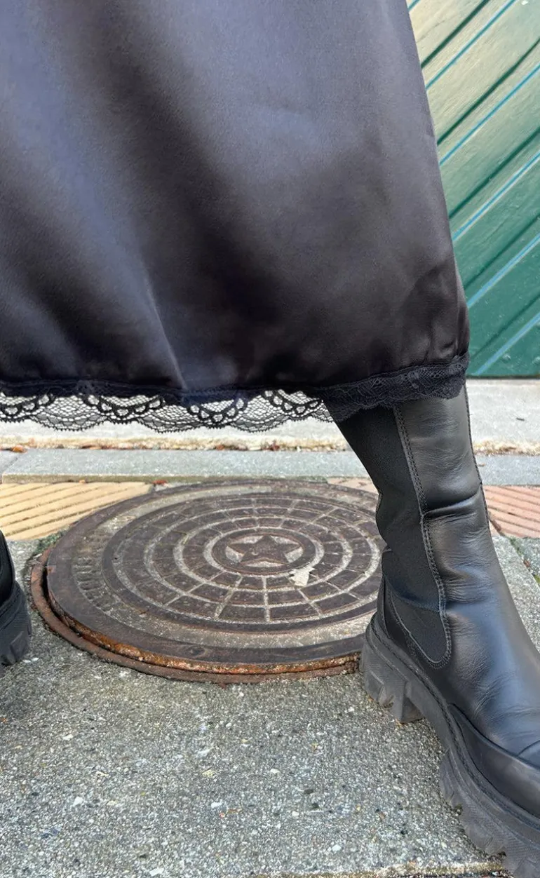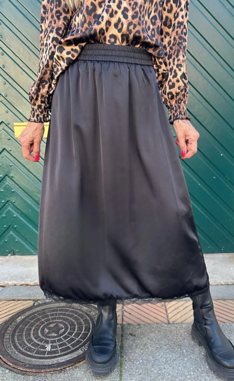 Fin nederdel fra INA Copenhagen i sort med den fineste blonde-kant i bunden.