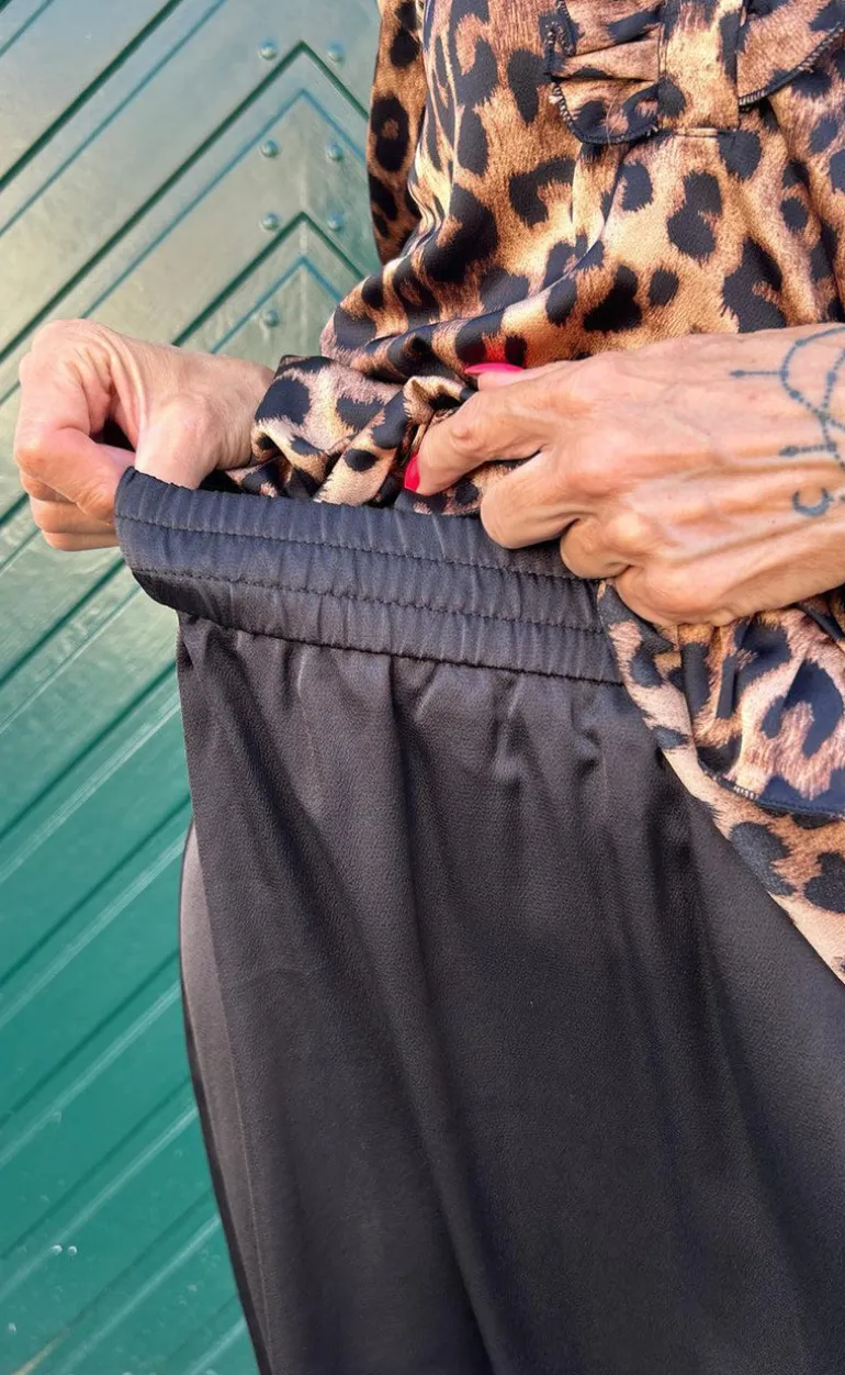 Nederdelen har elastik i livet, så den er virkelig behagelig at have på.