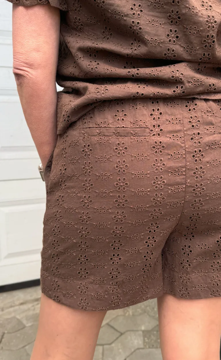 Smukke shorts fra INA Copenhagen i brun broderie anglaise.