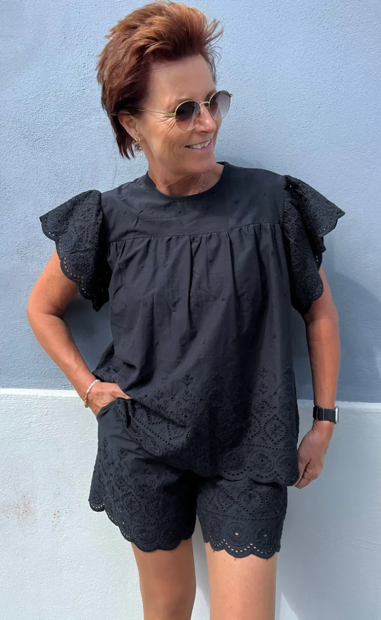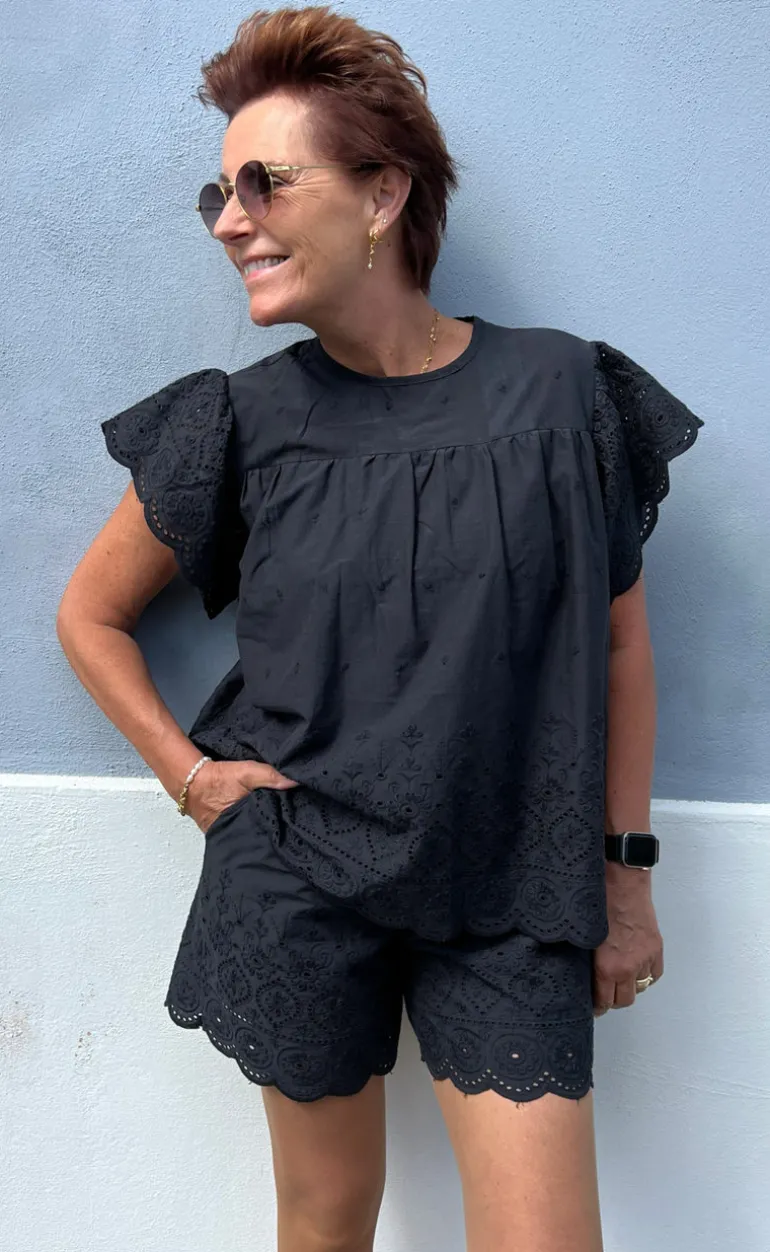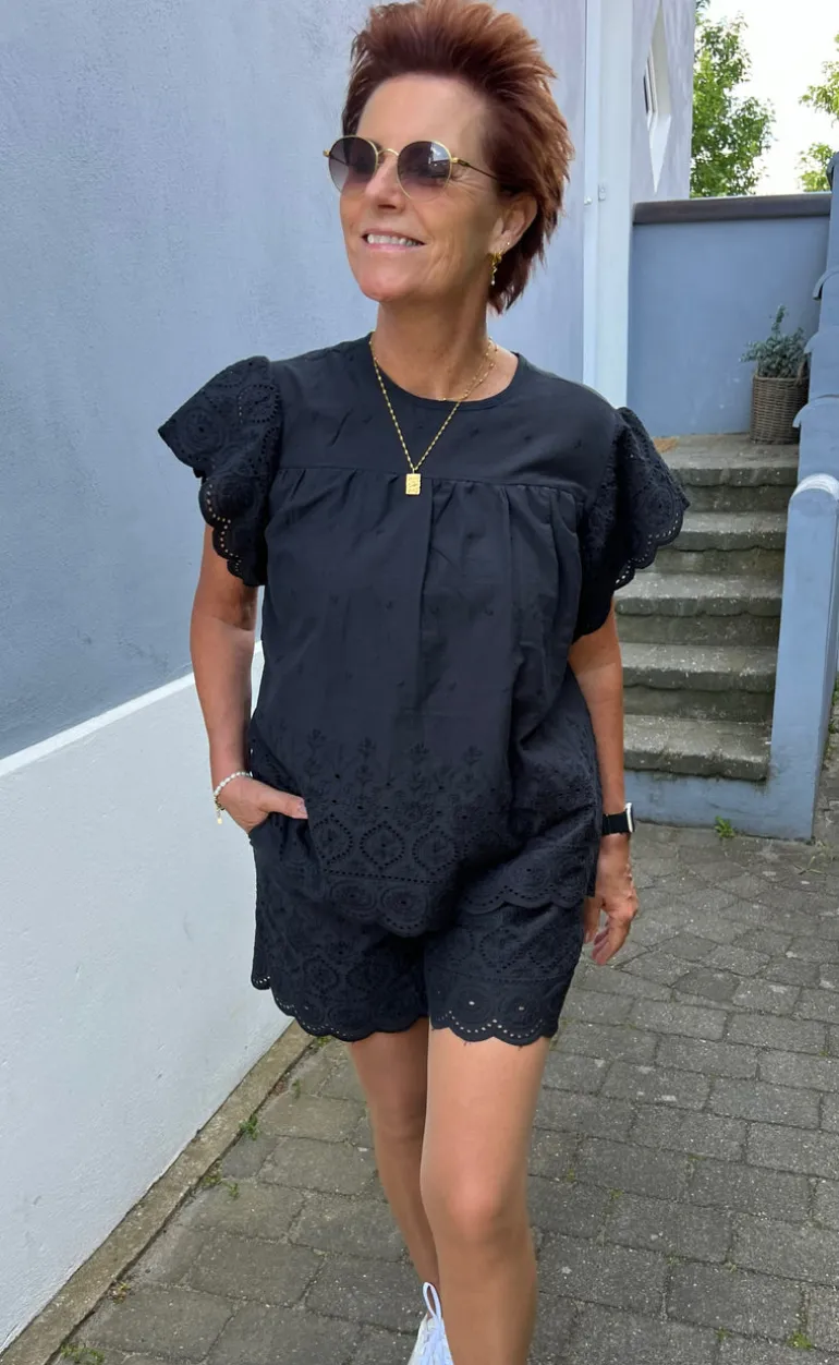 Flotte shorts fra INA Copenhagen i sort med broderi anglaise detalje nederest.