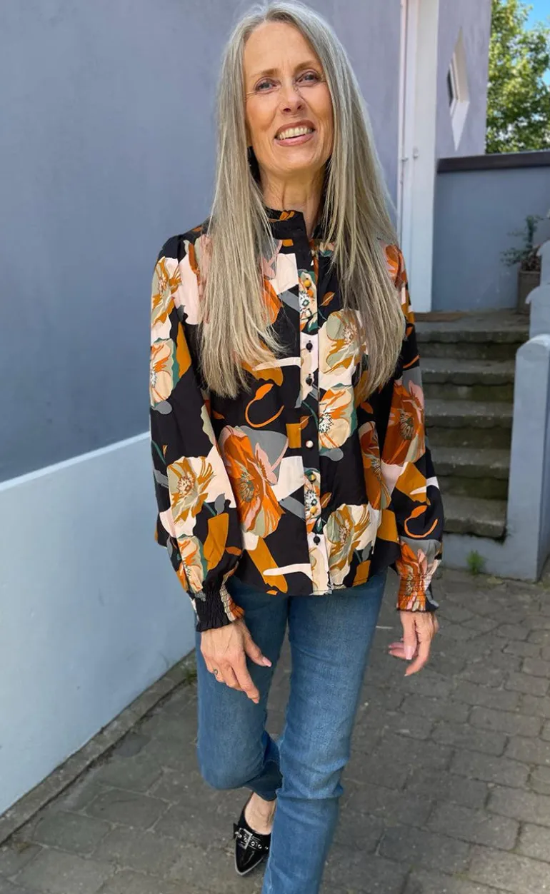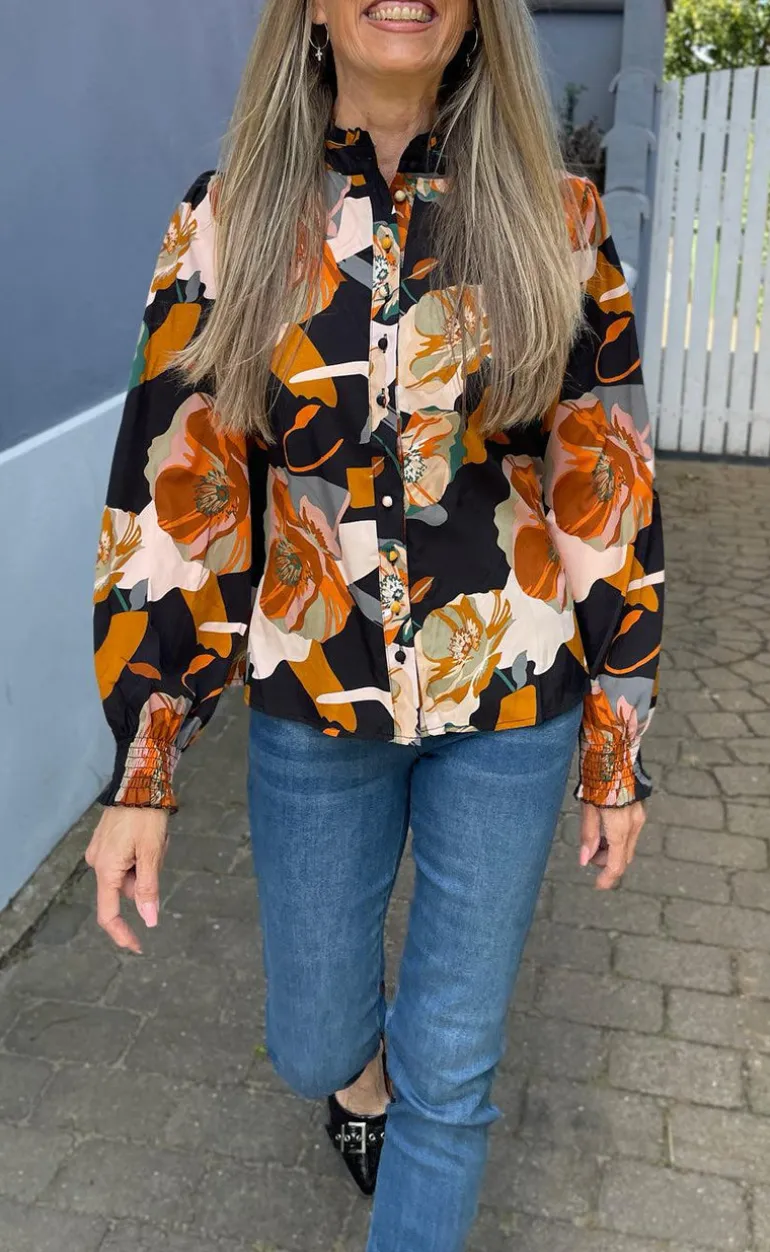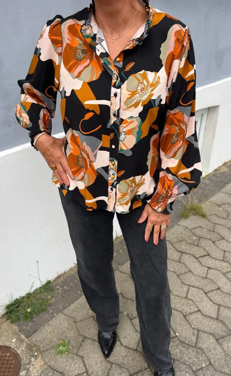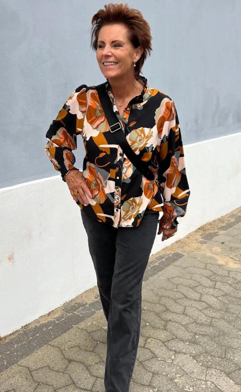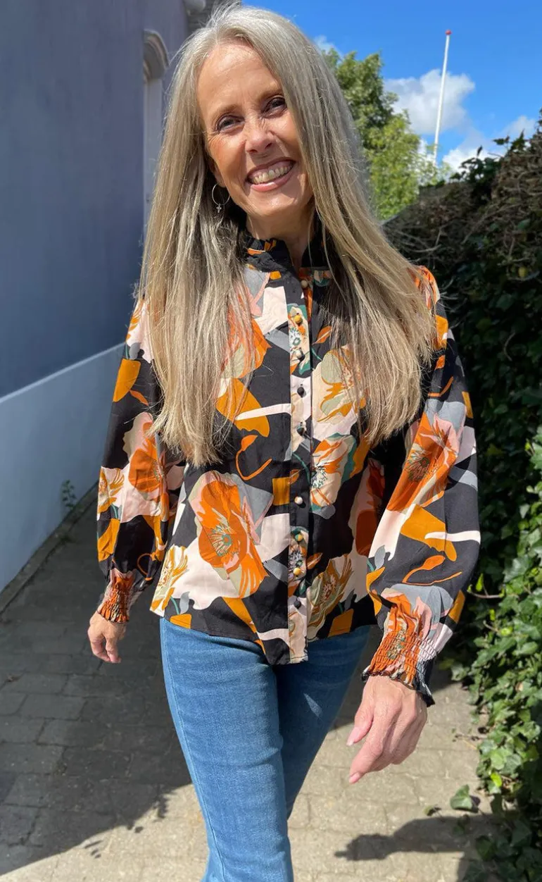 Fin skjorte fra INA Copenhagen i sort med blomsterprint.