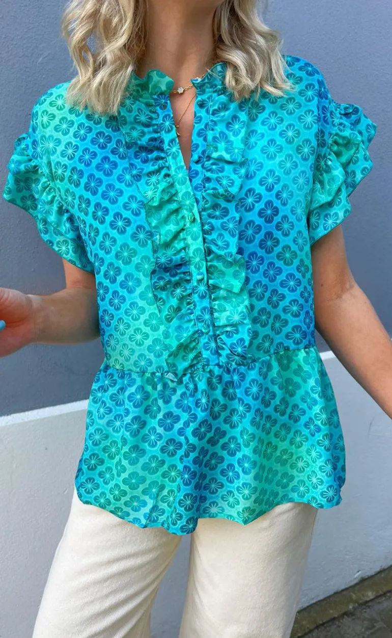 Nydelig top fra INA Copenhagen i blå nuancer.