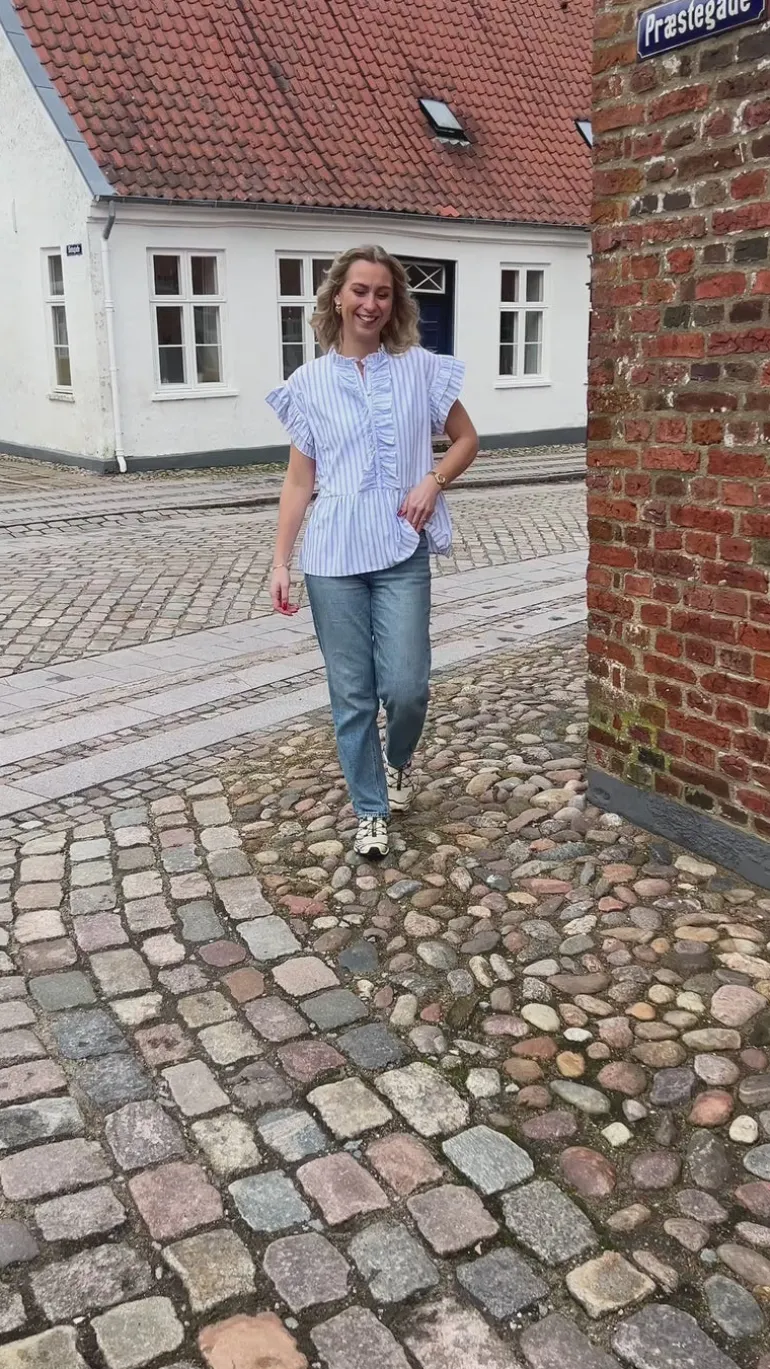 Nydelig top fra INA Copenhagen i hvid med lyseblå striber.