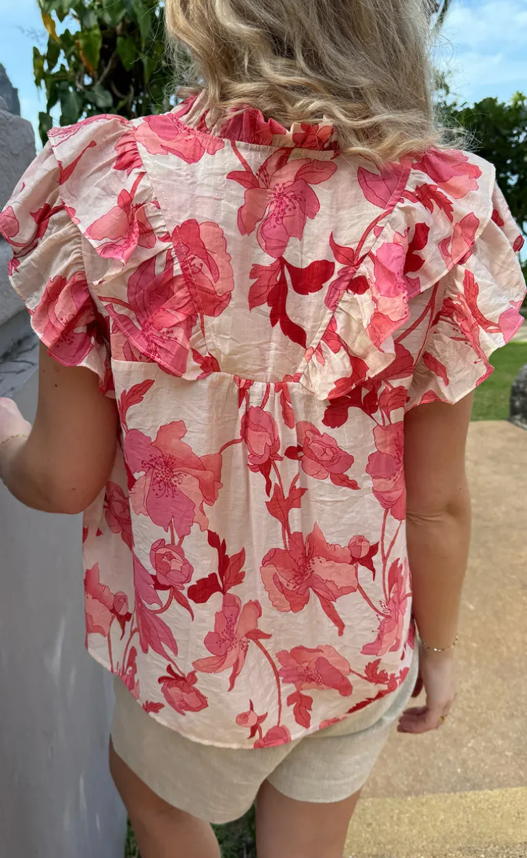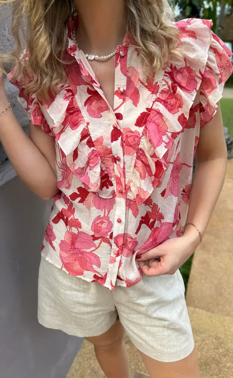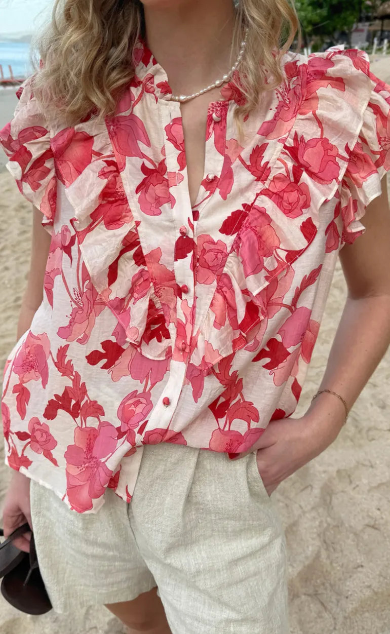 Den smukkeste top fra INA Copenhagen i et lyserødt print med blomster.