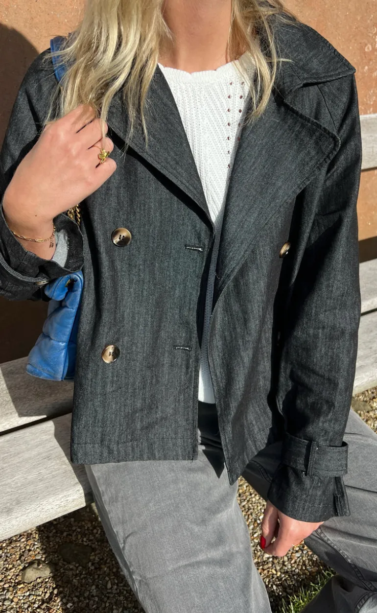 Smart trenchcoat fra INA Copenhagen i sort denim look.
