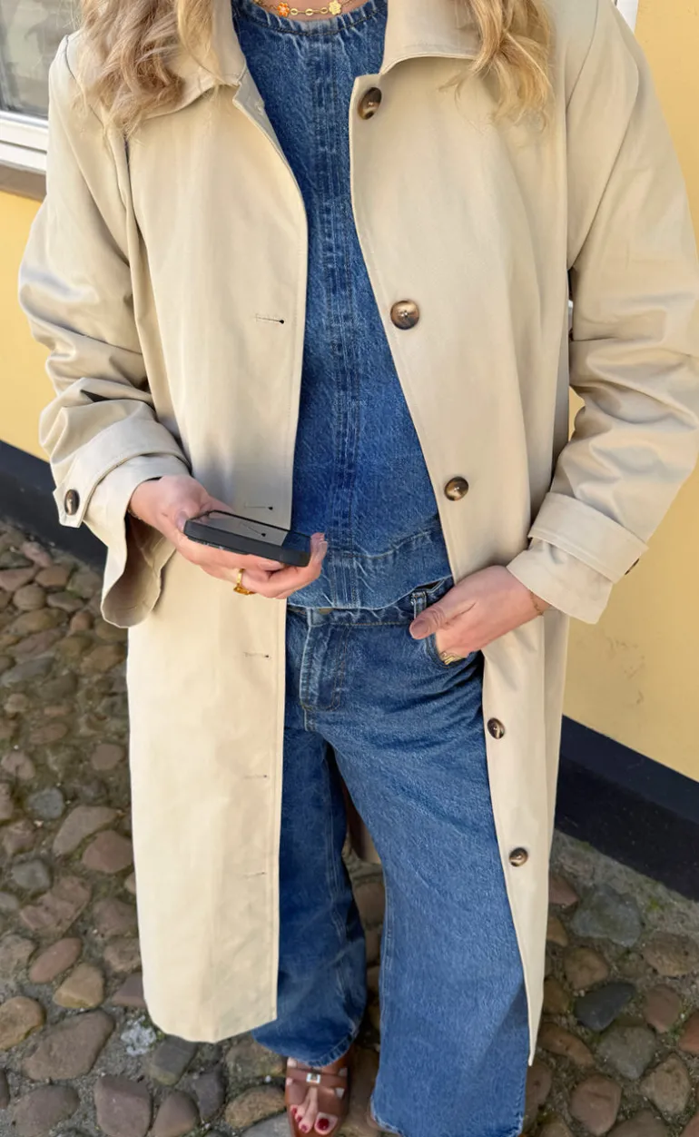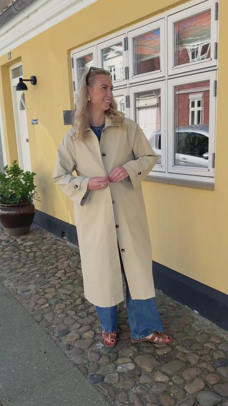 Smart trenchcoat fra Say INA Copenhagen i beige.