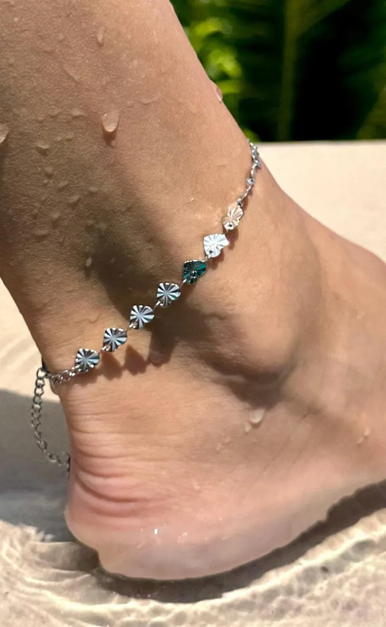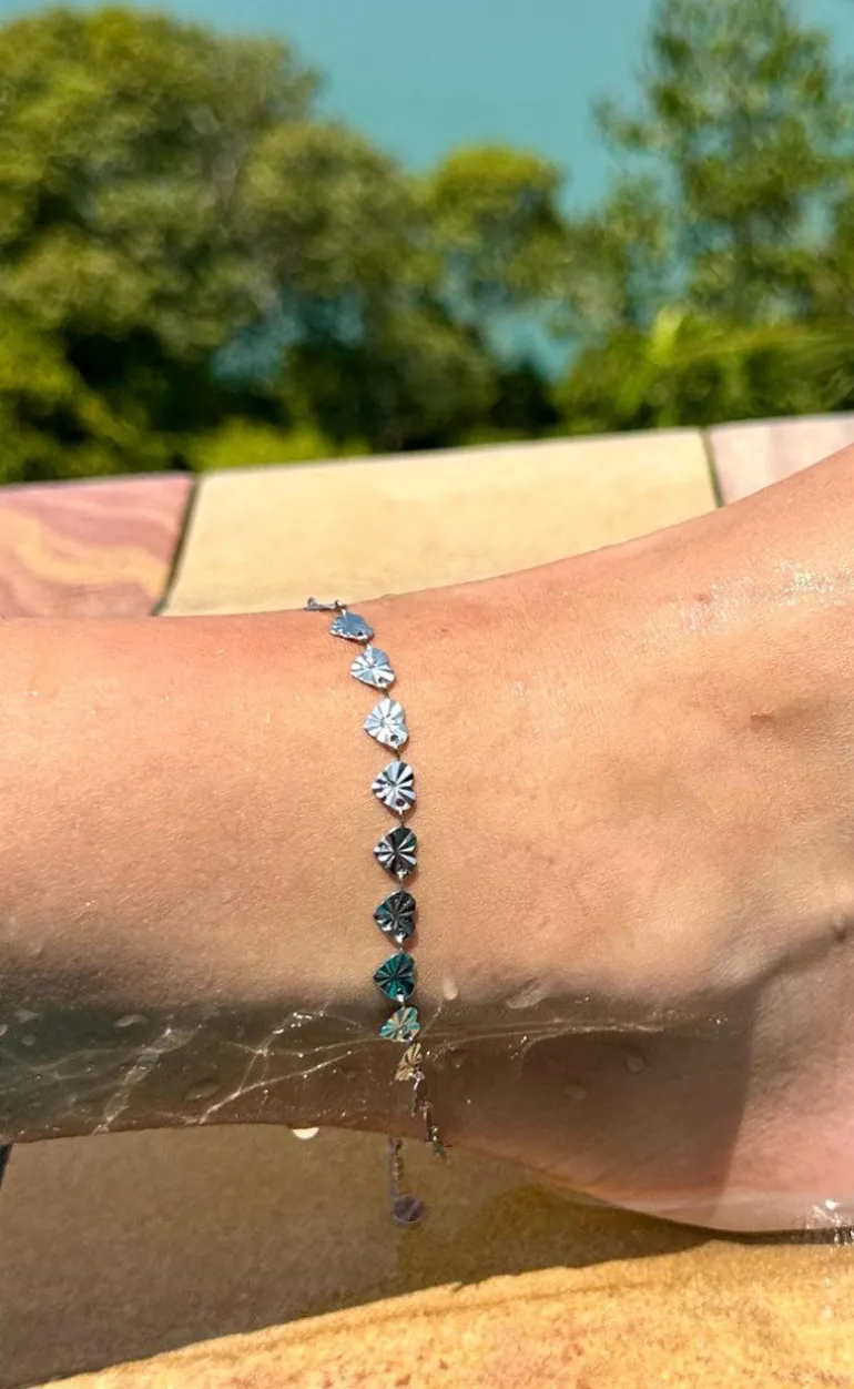 Flot ankelkæde fra Smykkeli Copenhagen i sølv med de fineste hjerte-vedhæng. Ankelkæden er både vand- og svedafvisende, så den er perfekt til sommerferien!