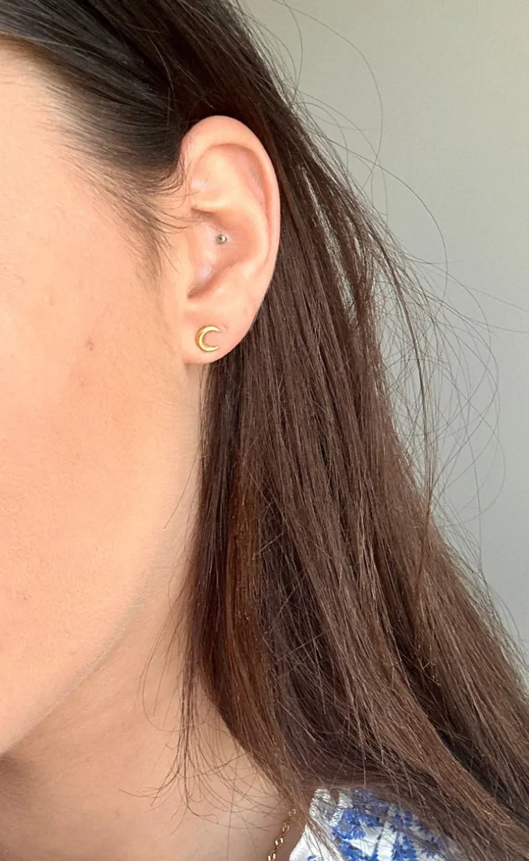 Øreringe fra Smykkeli Copenhagen i guld formet som en måne.
