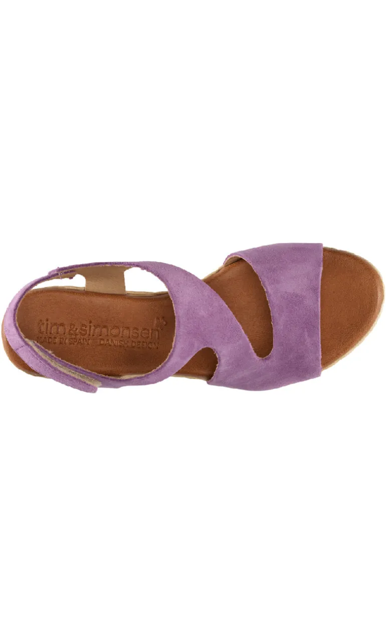 Flotte sandaler fra Tim & Simonsen i lilla med en blød gummisål i memory skum, så de er virkelig gode og behagelige at gå i.