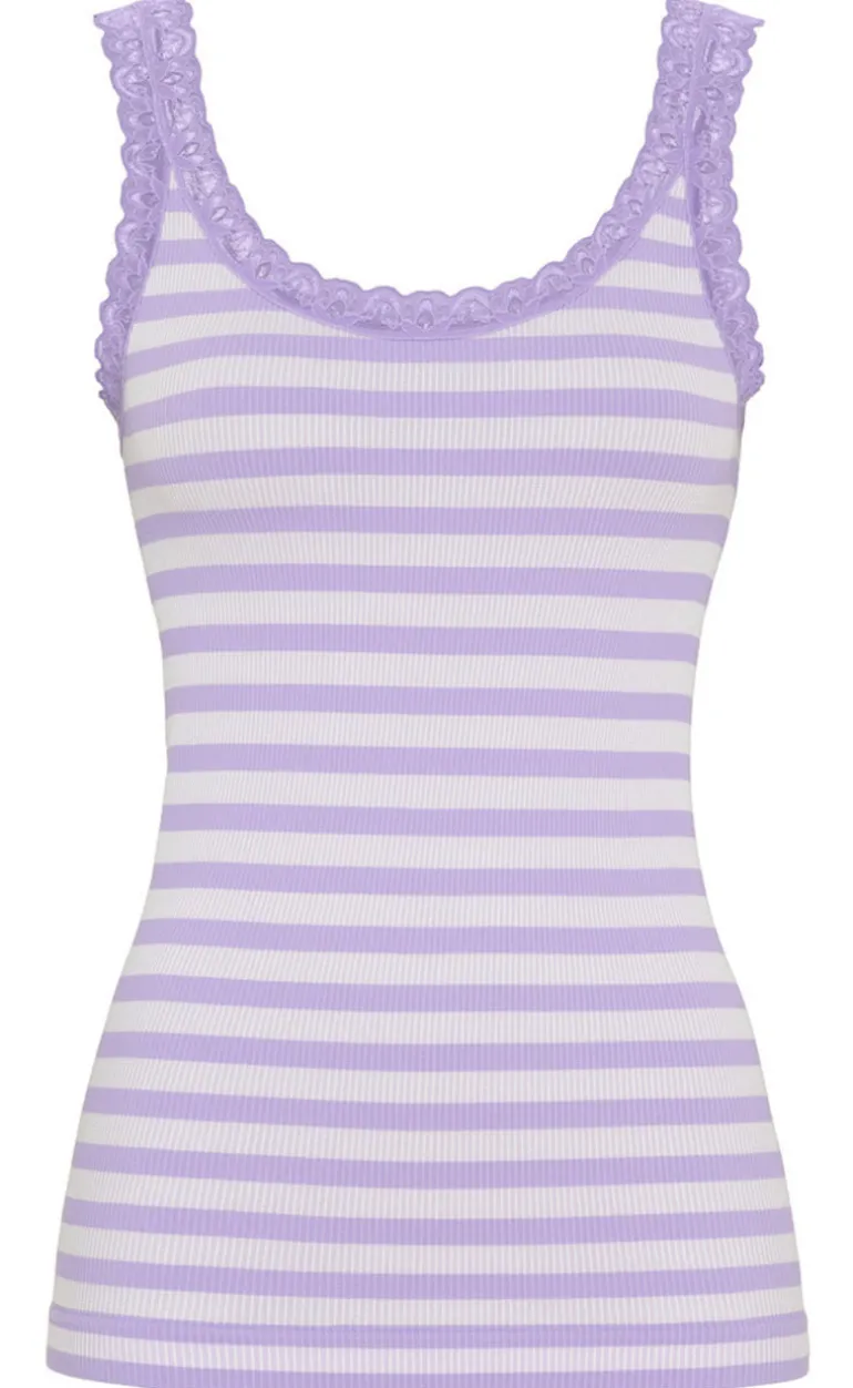 Fin top fra Tim & Simonsen med striber i lilla og hvid.