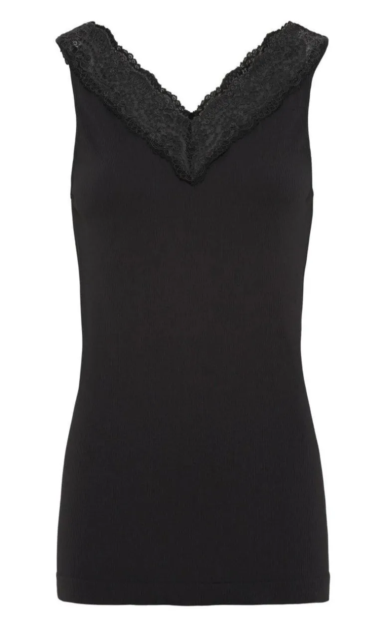 Lækker basic top med blonder fra Tim & Simonsen i sort.