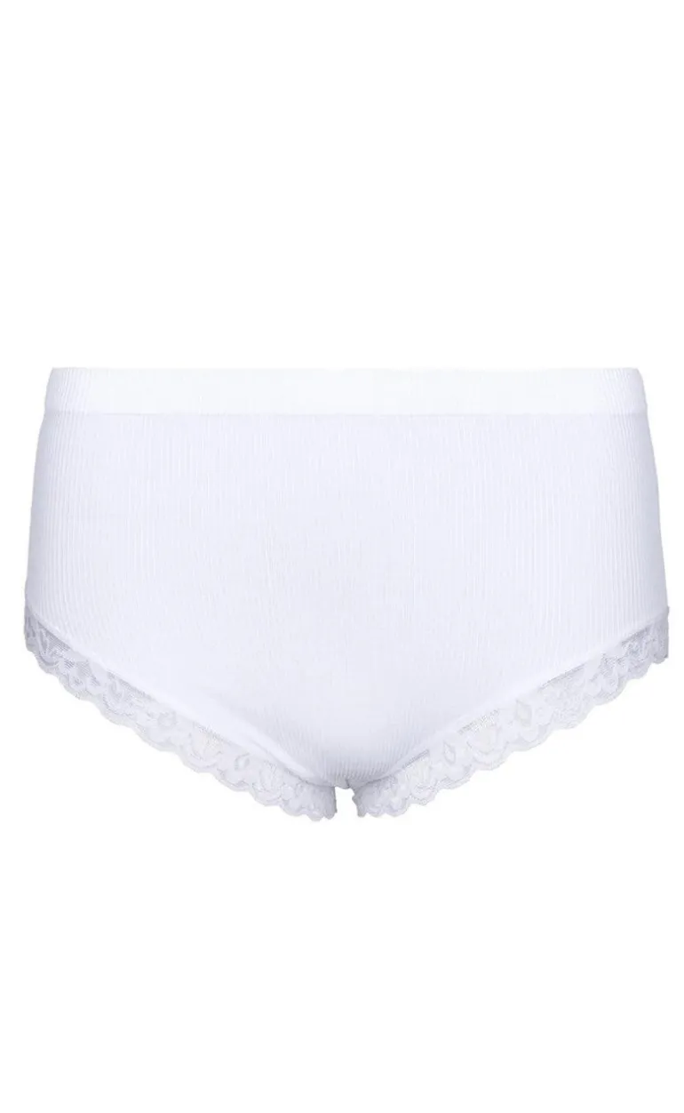Søde trusser i hvid fra Tim & Simonsen. Trusserne er lavet i et strækbart og ribbet materiale, så de er super behagelige at have på. De har fine blondedetaljer.
