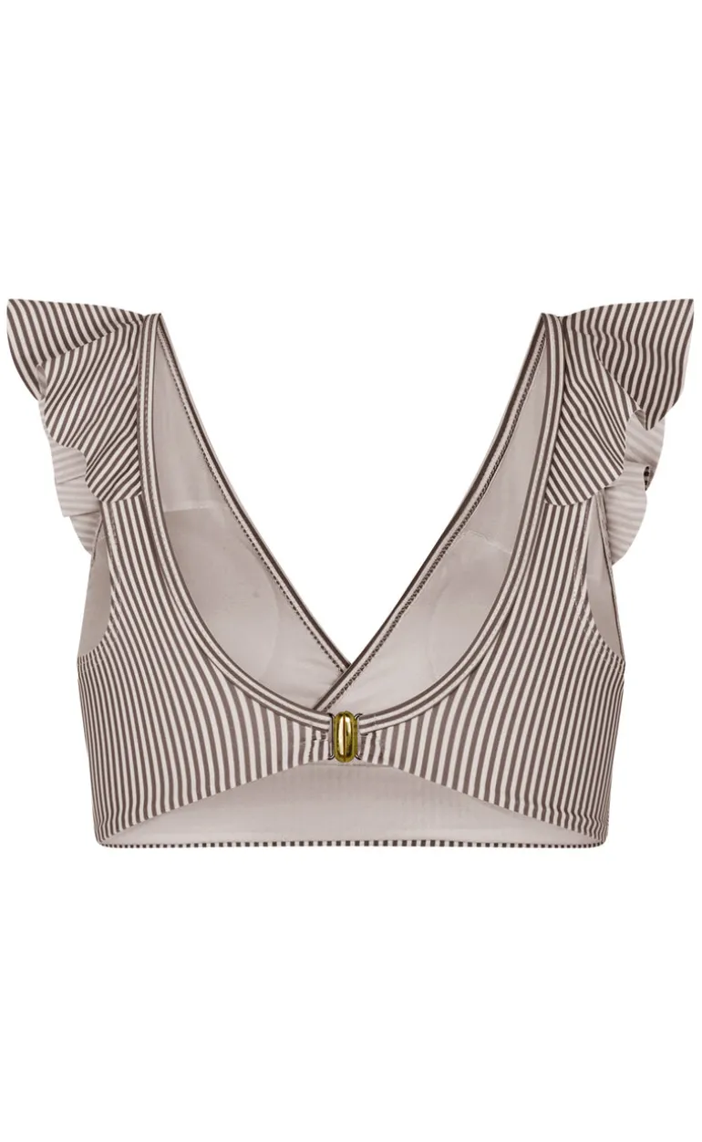 Brun/hvid stribet bikini overdel med de fineste flæse detaljer og perfekt pasform