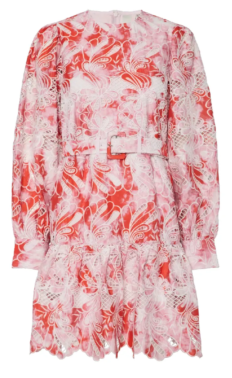 Kjolen har lange ærmer, en mini længde og et bælte i taljen.