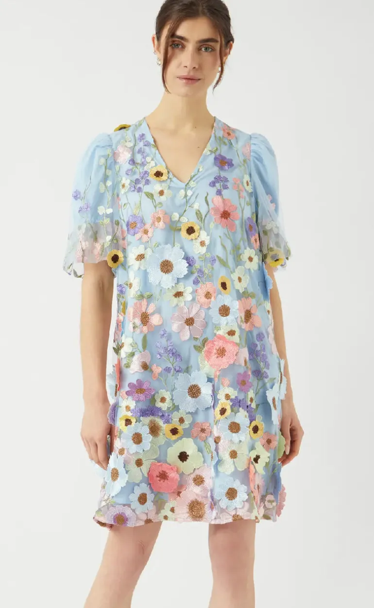 Kjolen har fine 3d blomster som giver et fint præg af forår.