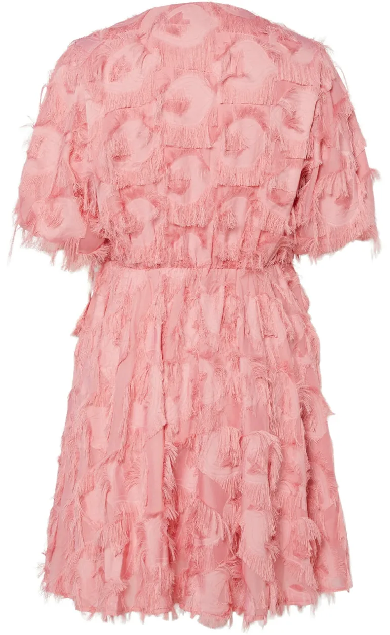 Super smuk kjole fra YAS i en coral lyserød farve, med et fyldigt design.